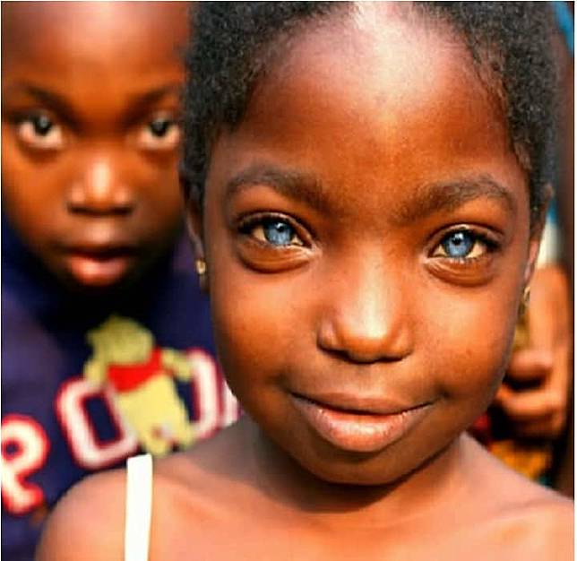 1. Mata bewarna biru kontras dengan warna kulitnya