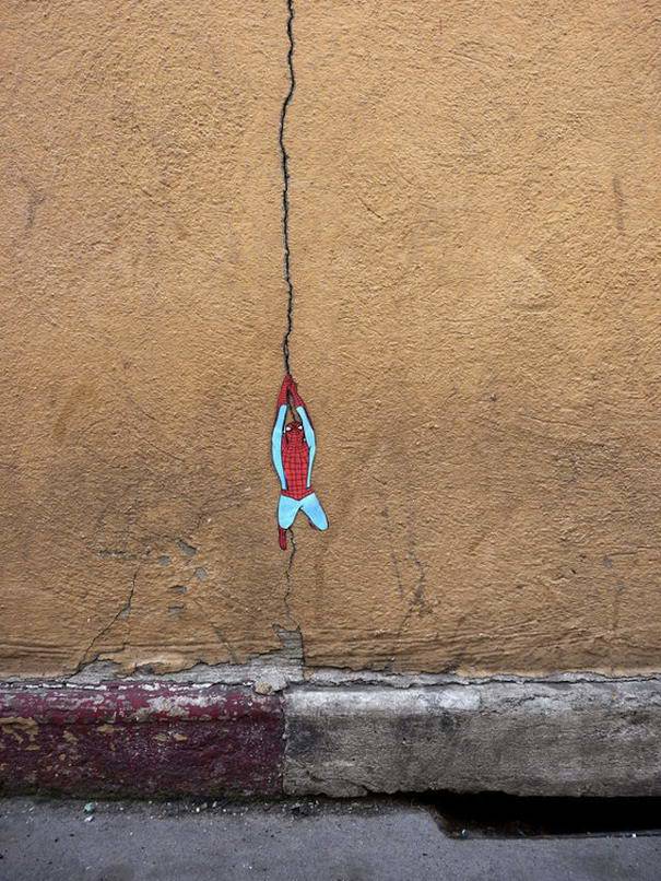 9. Retakan di tembok jadi jaring laba-laba spiderman.