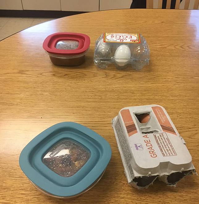 5. Dua coworker ini agak kaget ketika mereka bawa tempat makan yang sama, dengan menu yang sama + tiga telur di tempat terpisah. Hayoo, jangan-jangan istrinya sama nih.