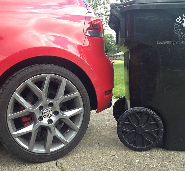 6. Bentuk bemper mobil sama lekukan tempat sampah bisa pas gini yaa.